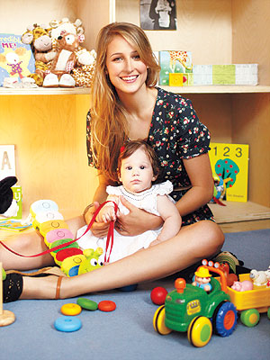 So far, her dreams have come true. Whether it’s little Lewi’s fascination with “loud, booming noises” or her scrutiny of every new face, Sobieski says, “I’m really seeing her curiosity come out now — she just looks so smart. If she laughs, I laugh. If I heard myself talking a year ago, I’d be like, ‘So boring!’ But that’s what happens. My baby is really fascinating to me.”